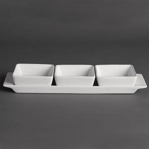 Product Description: Enhance your dining experience with these versatile and durable snack dishes and plates from Olympia Whiteware. Crafted for busy hotels, canteens, casual dining restaurants, and cafes, this porcelain crockery set offers excellent value. The strengthened rolled edges provide chip resistance, while the fully vitrified body ensures glaze durability, making them perfect for the demands of the professional catering environment.