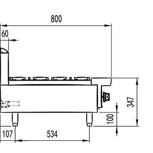 The AT80G6B-C-NG combines six high-output burners, a robust stainless frame and a space-efficient 800 Series depth to drive consistent service across multiple pans.