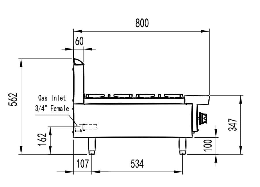 The AT80G6B-C-NG combines six high-output burners, a robust stainless frame and a space-efficient 800 Series depth to drive consistent service across multiple pans.