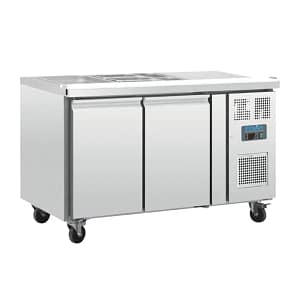 At KW Commercial Kitchen, we supply the Polar FT281-A – a commercial two-door counter fridge combining generous 205-litre storage with a GN-compatible prep top. Ideal for fast-paced food prep areas where freshness, hygiene, and space efficiency matter.