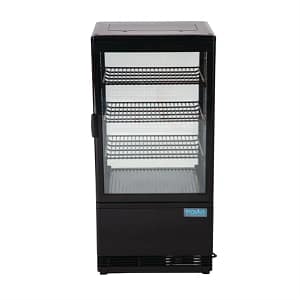 The Polar CX577-A combines energy-saving LED illumination, adjustable digital controls, and forced-air cooling to ensure consistent product presentation and freshness in a sleek black cabinet.
