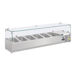- Capacity and Size: Accommodates up to six 1/4GN pans (sold separately) with overall dimensions of 1400(W) x 330(D)mm.