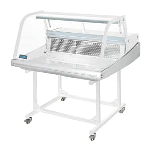 - Construction: Glass and stainless steel body, energy-saving LED lighting, easy-access sliding rear doors, drainage system with hose