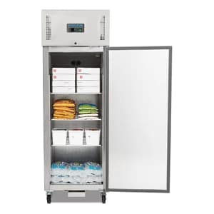 - Construction: Stainless steel exterior, aluminium interior, 3 adjustable shelves, gastronorm GN 2/1 compatible, digital controller & display, R290 refrigerant