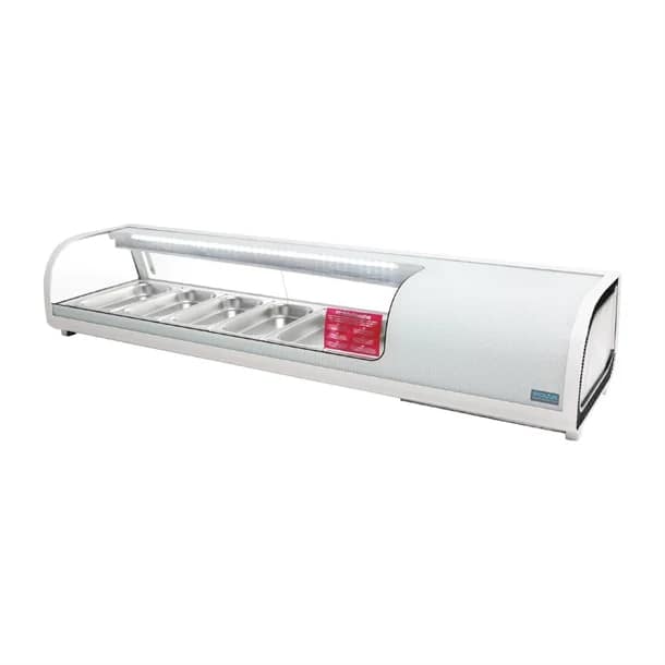 The Polar GP296-A is a 62L G-Series tapas and sushi display fridge designed to present food beautifully while keeping it fresh. With forced air cooling, digital temperature control, and curved LED-lit glass, it’s the perfect front-of-house solution for cafés, sushi bars, and delicatessens.