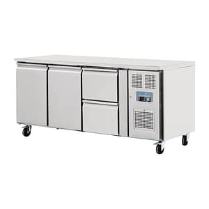 Optimize your kitchen space with the Polar U-Series 2 Door and 2 Drawer Counter Fridge (GD874-A). This fridge is designed to maximize efficiency and convenience in your kitchen. The insulation ensures that your food stays at the optimum temperature, while adjustable shelves accommodate chilled foods of various shapes and sizes. With self-closing doors for energy efficiency and gastronorm compatibility for easy ingredient access, this fridge is a chef’s ally in food preparation. User-friendly temperature controls and display allow for precise temperature adjustments to keep food fresher for longer. With automatic defrost for maximum efficiency and a fan-assisted cooling system for rapid temperature recovery, your ingredients stay at their best.