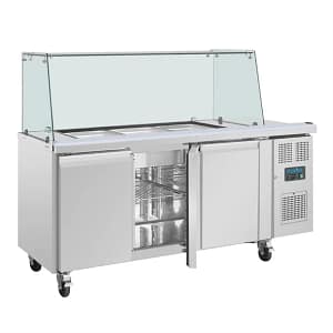 Keep your most-used ingredients perfectly chilled and easily accessible with the Polar U-Series GN Saladette Counter with Square Sneeze Guard. This three-door saladette counter combines a versatile gastronorm-compatible top with a spacious triple-door base, providing superbly flexible prep and storage solutions for any busy professional kitchen. Whether you’re making salads, pizzas, or sandwiches, the Polar saladette counter offers the capacity, reliability, and performance you need to speed up prep while promoting excellent hygiene.