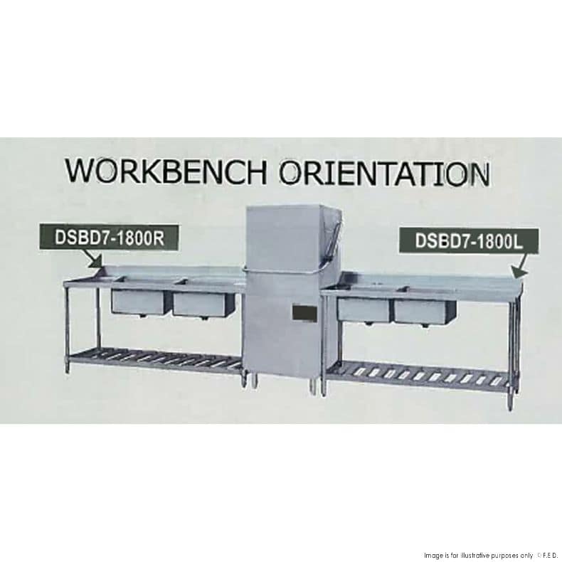 FED DSBD7-1800R/A Double Sink Dishwasher Bench Right Inlet – 1800mm, 304 Grade