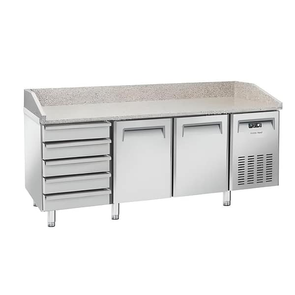 With a stainless steel body, anti-corrosion evaporator, and high-efficiency cooling system, the Saltas MPB0026 offers reliable long-term performance for high-output kitchens. Its granite worktop doubles as a food prep station while drawers and shelving ensure total workflow efficiency.