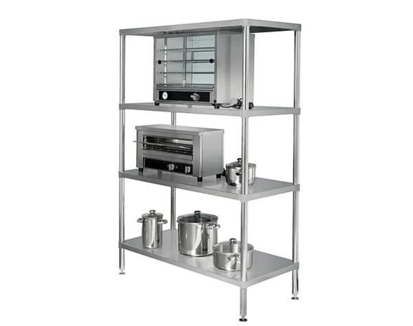 At KW Commercial Kitchen, we supply the Simply Stainless SS17.0900SS, a robust 4 tier adjustable shelving unit measuring 900 × 525 × 1800 mm. Built with 1.2mm thick stainless steel shelves and 38mm diameter legs, this shelving system is ideal for kitchens needing reliable, hygienic, and long-lasting storage.