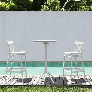 Product Description : Elevate your indoor and outdoor spaces with the Sky Folding Bar Table 60 Square in Black. Designed for light commercial and domestic use, this table combines durability with style. Backed by a 5-year structural warranty, it offers peace of mind. Crafted with weather-resistant materials and UV stabilization, it ensures long-lasting performance. Featuring easy assembly and the latest air molding technology, this table is perfect for various settings.