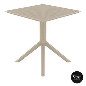 Product Description: Discover the exceptional strength and durability of the Taupe 60cm Sky Folding Table by Siesta. Crafted from one-piece injection molded polypropylene, reinforced with glass fiber, and UV stabilized, this table offers unparalleled stability and resistance to fading. Perfect for both indoor and outdoor commercial use, it’s built to withstand the demands of busy venues while maintaining its sleek appearance.