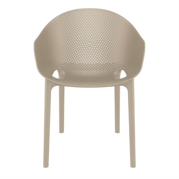 Introducing the robust and stylish Furnlink Siesta Exclusive Sky Pro Chair in chic Taupe, where exceptional strength meets sophisticated design. Crafted through an innovative one-piece injection moulding process with polypropylene, reinforced by glass fibre, this chair promises enhanced stability and longevity. Its composition includes a UV stabiliser, guaranteeing that the chair remains unfaded and resilient in the harshest of sunny conditions. Specially built for the rigours of busy commercial venues, the Sky Pro chair is a versatile fixture suitable for both indoor and outdoor settings. With the convenience of stacking up to four chairs high, storage becomes effortless, maximizing space efficiency. Each chair measures 810mm in height, 540mm in width, and 600mm in depth, offering a comfortable seat height of 450mm. The durability of this seating solution is supported by a generous 5-year warranty, and the acknowledgment of quality through CATAS testing. Proudly made in Europe, the Sky Pro chair is available in a range of colours: Black, Anthracite, Red, White, Mango, and the sophisticated Taupe featured here.