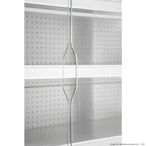 - Doors: 2 hinged glass doors (620 mm wide each)