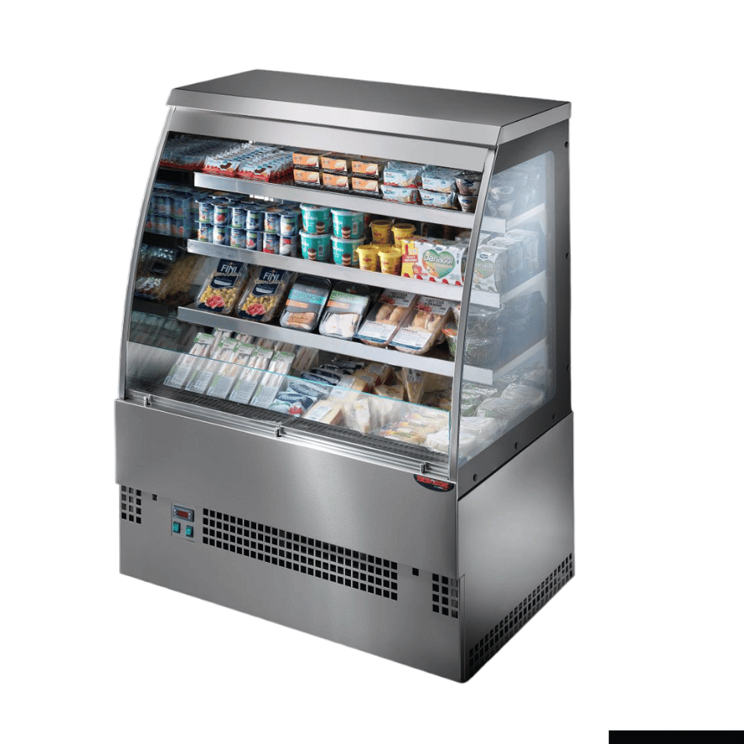 It’s ideal for packaged snacks, cold drinks, dairy, salads, sandwiches, and ready-to-eat foods. Avoid displaying unwrapped or hot items to ensure performance and hygiene.