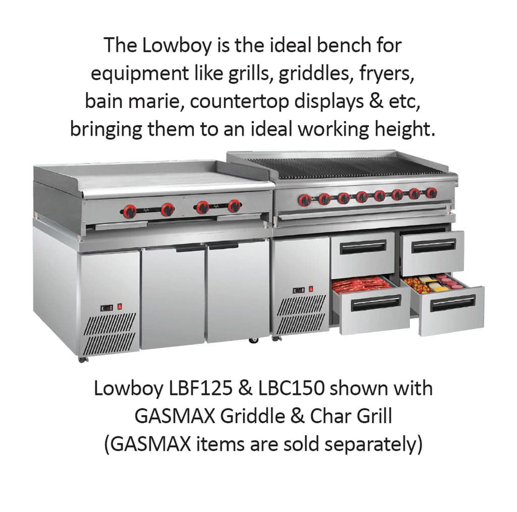 * The Lowboy is the ideal bench for equipment like grills, griddles, fryers, Bain marieMarientertop displays and etc, bringing them to an ideal working height.