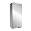 - Construction: Stainless steel interior & exterior; 3 hinged doors; LED lighting; one GN shelf level plus floor; heated door frame; fan-forced evaporator cooling; auto defrost; self-evaporating drainage; rounded internal corners