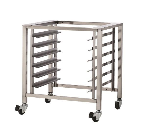 The Turbofan SK33 Stainless Steel Stand is the perfect complement to your E33 oven models. Built with high-quality stainless steel and equipped with castors, including two with swivel locks, it ensures stability and mobility in your kitchen.