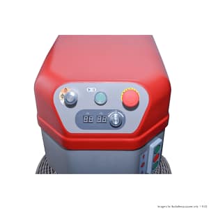 The mixer uses a steel construction with a VFD drive, built-in overload/overheat protection, and a moisture-resistant design, making it ideal for daily commercial use.