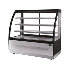 Benefits: The Atosa DF127D Cake Display Fridge not only enhances the visual appeal of your bakery products but also ensures they are kept at the perfect temperature for freshness. The sleek round glass design attracts customers, while the energy-efficient LED lighting and heated glass offer clear visibility without fogging. The easy-access sliding doors and adjustable shelving make it practical for daily use in busy bakery environments.