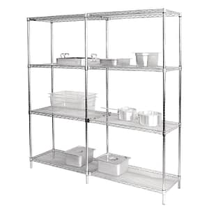 Product Description: Enhance the organization of your kitchen with the Vogue Chrome Wire Shelves. These shelves come in a pack of 2 and are designed to help you create a customized wire shelving system tailored to your needs. Whether you run a restaurant, bistro, cafe, or fast food takeaway, these shelves are a perfect addition to keep your commercial kitchen well-organized. No tools are required for assembly, and each pack includes 8 pairs of shelf clips.