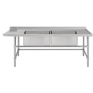 Suitable for large kitchens, this inlet table with double sink has been designed to attach to the right hand side of your dishwasher. It will provide you with a space to pre-rinse items and have them ready for the next load. Made from robust stainless steel. they are incredibly tough and are easy to wipe clean.