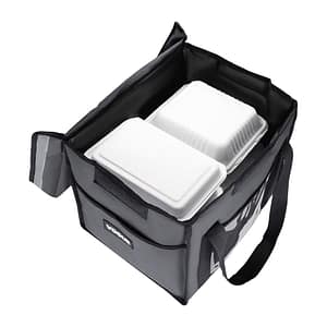 The Vogue FR225 is a grey insulated folding delivery bag built to keep food hot or cold during transport. Featuring durable polyester fabric, reflective straps, and a compact folding design, it’s a versatile solution for restaurants, hospitals, schools, and catering services.