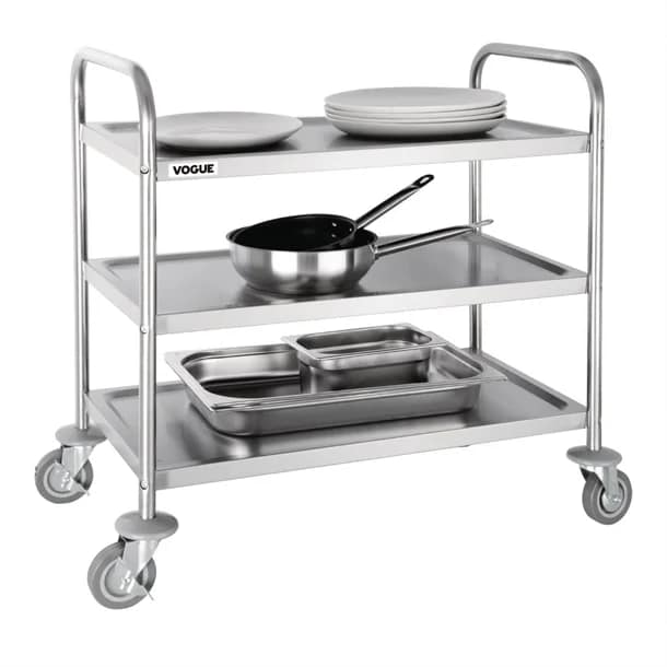 Vogue F994 Stainless Steel 3 Tier Clearing Trolley – Medium, 128kg Capacity