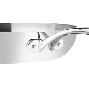 It’s a three-layer structure with an aluminium core between stainless steel layers for even heat and improved energy efficiency.