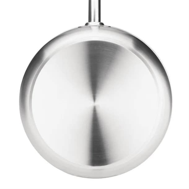 It’s a three-layer structure with an aluminium core between stainless steel layers for even heat and improved energy efficiency.