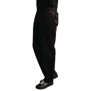 Keep your staff cool and comfortable throughout even the longest shifts with Whites Easyfit Chef Pants. Available in sizes XS to XXL, these black pants feature an elasticated waistband for a relaxed fit and are made from breathable polycotton that improves airflow.
