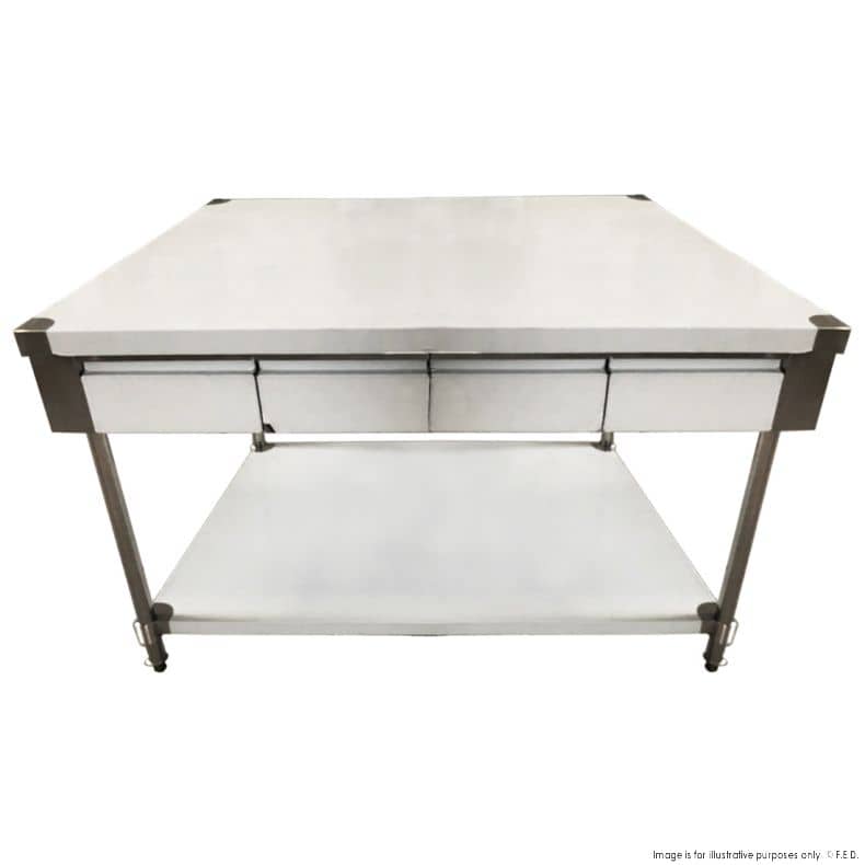 The FED SWBD10-1800 is a premium stainless steel centre island workbench featuring 8 drawers (4 each side), a durable undershelf and 304-grade stainless steel construction. Designed for hygiene, efficiency and organisation, it’s an ideal storage and prep solution in busy foodservice environments.