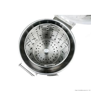 Transparent lid allows monitoring without opening; stainless food-grade build ensures hygienic operation.